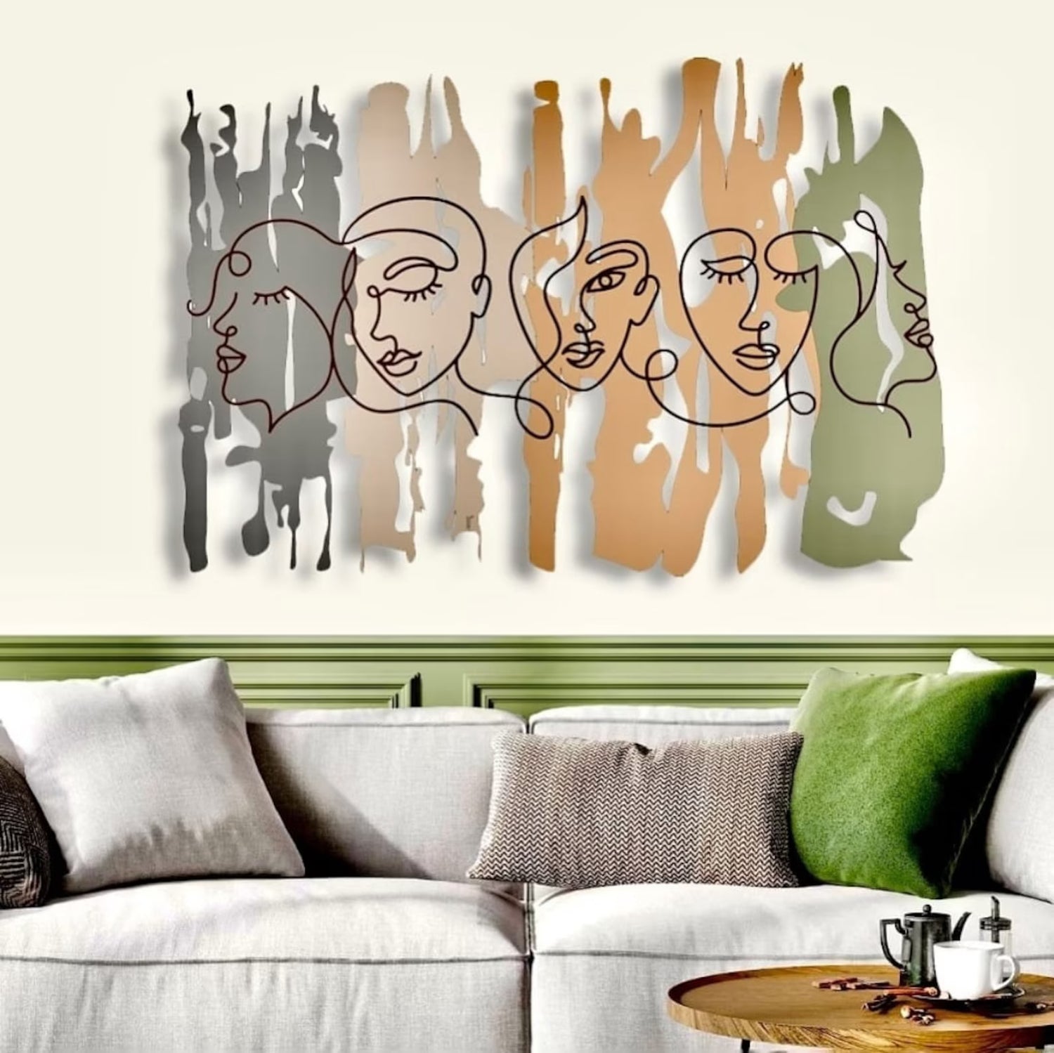 “Aurora” is a striking metal wall art piece blending fluid brushstroke backdrops with elegant one-line faces. Its earthy tones and modern design bring warmth, depth, and sophistication to any living space.