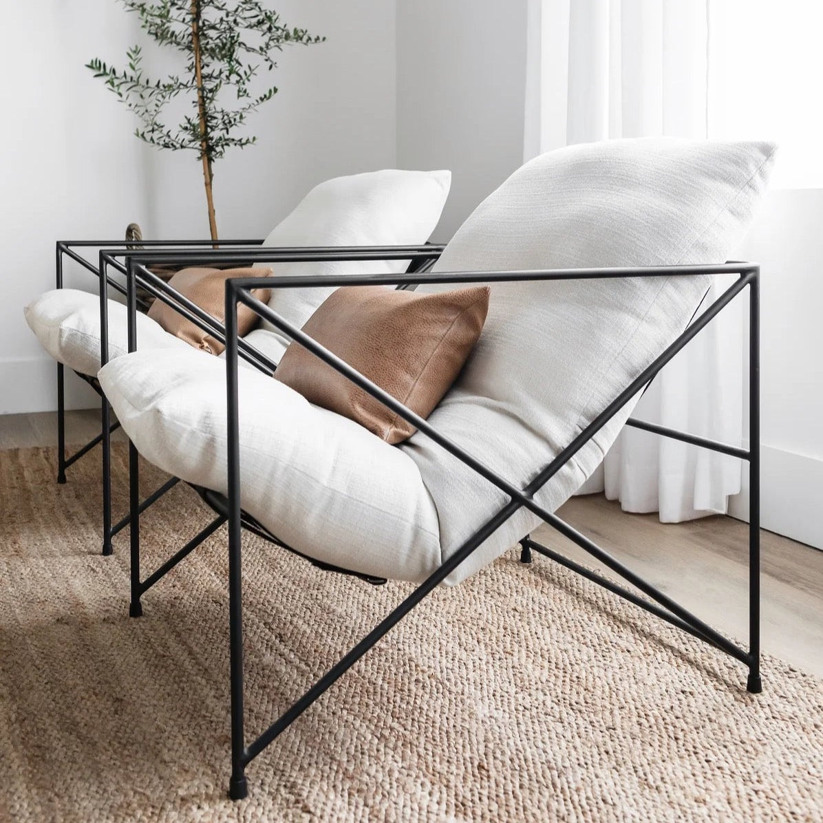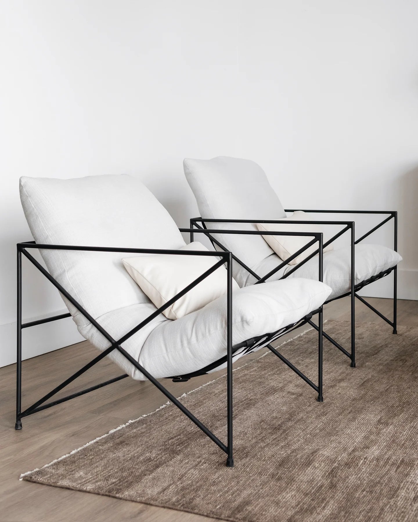 The Cleopatra is an exceptionally comfortable lounge chair that features a perfectly padded, fabric-wrapped seat rested atop a solid metal frame.