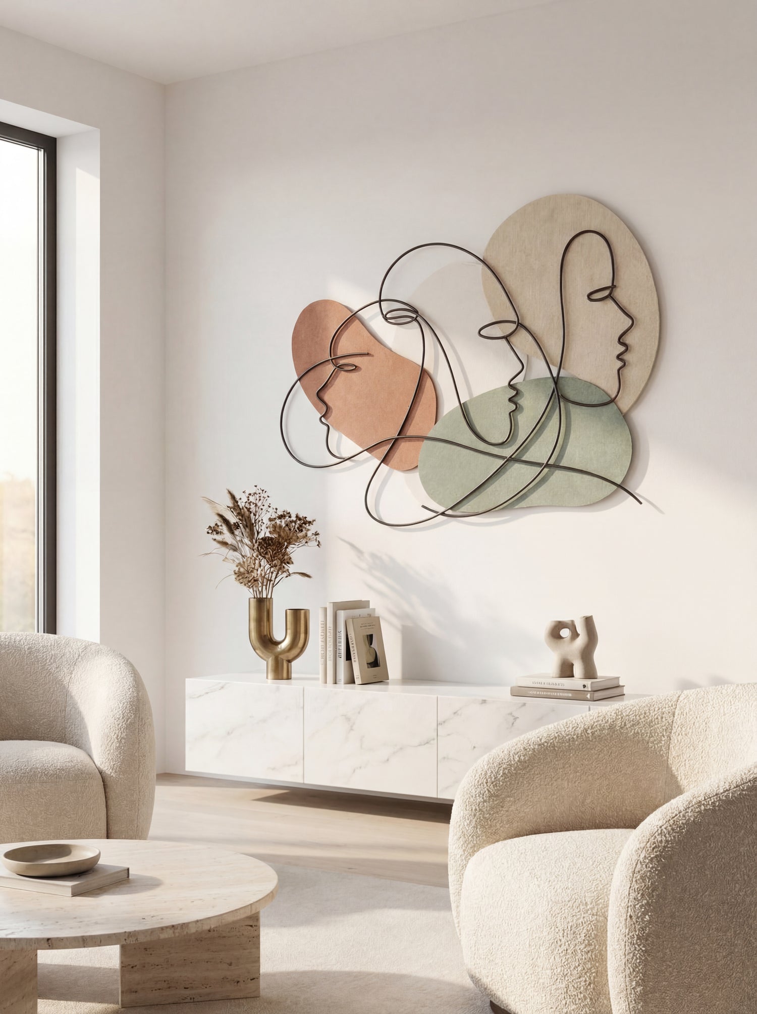 Echo is a sculptural metal wall art piece that captures the quiet conversation between forms, faces, and emotions.