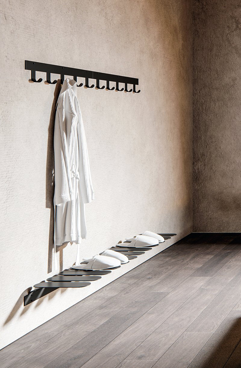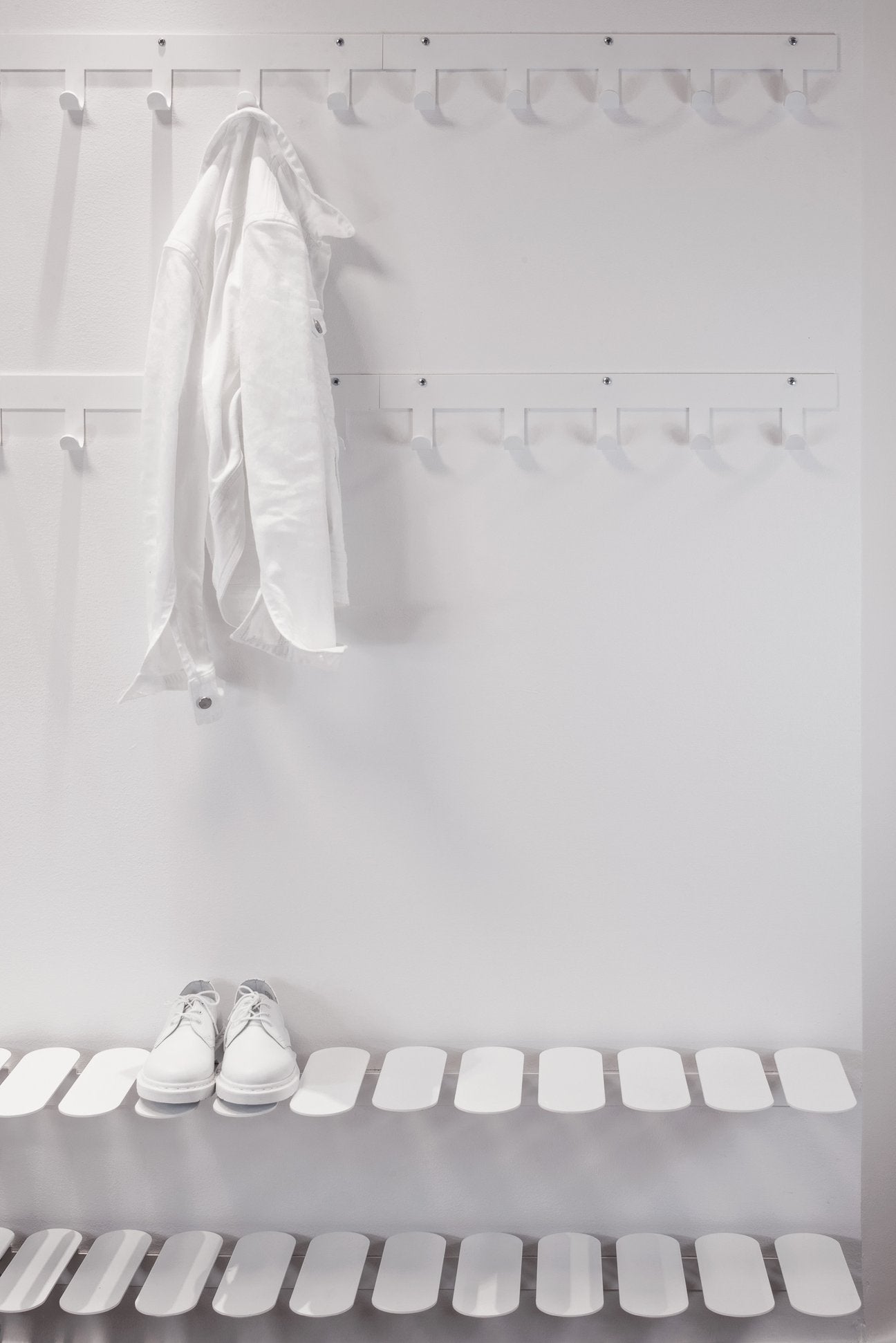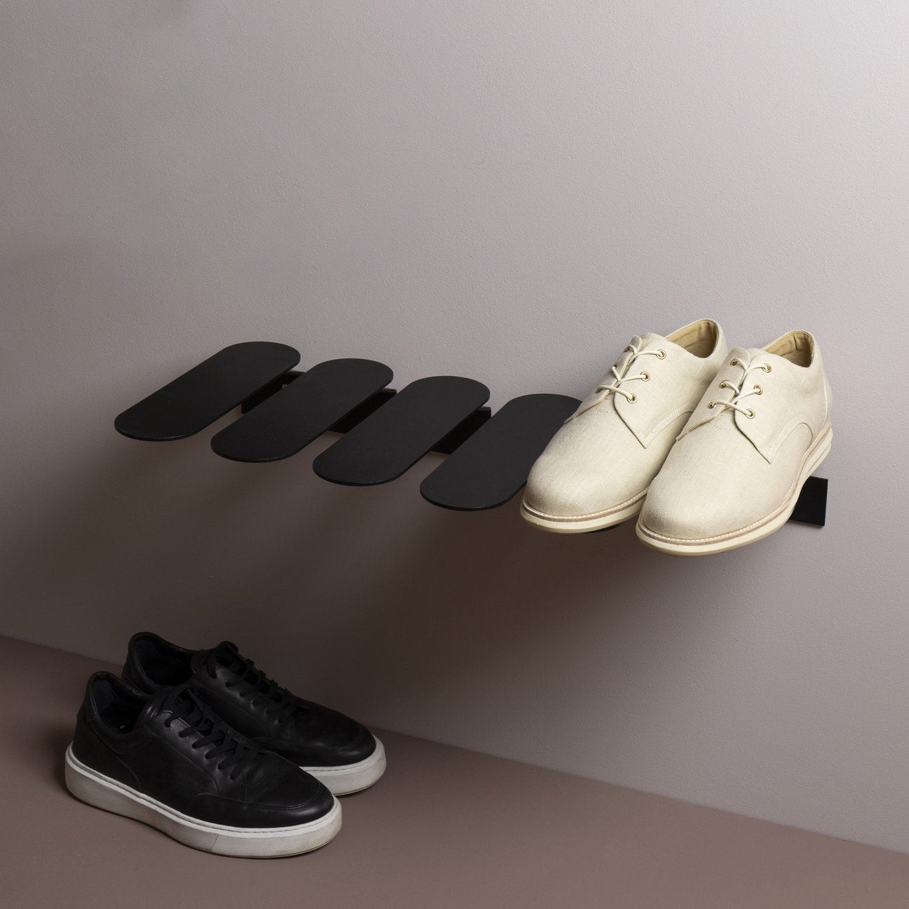 Make your shoes float with Step. The shoe shelf holds three pair of shoes. Available in black and white. Perfect for an hallway demanding an uncluttered nominalistic look. Oh, it's super easy to clean as well.