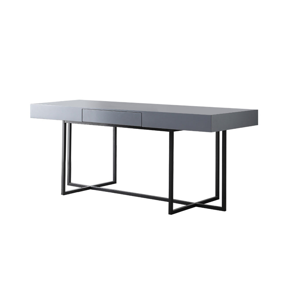 A perfect fit for modern industrial-themed home decor. Available in 3 sizes, this grey writing desk adds modern industrial style to your home office or workplace. 1 drawer helps keep your documents, books, and other essentials well-organized. The construction of E1-grade MDF and durable metal ensures long-lasting usage and look.
