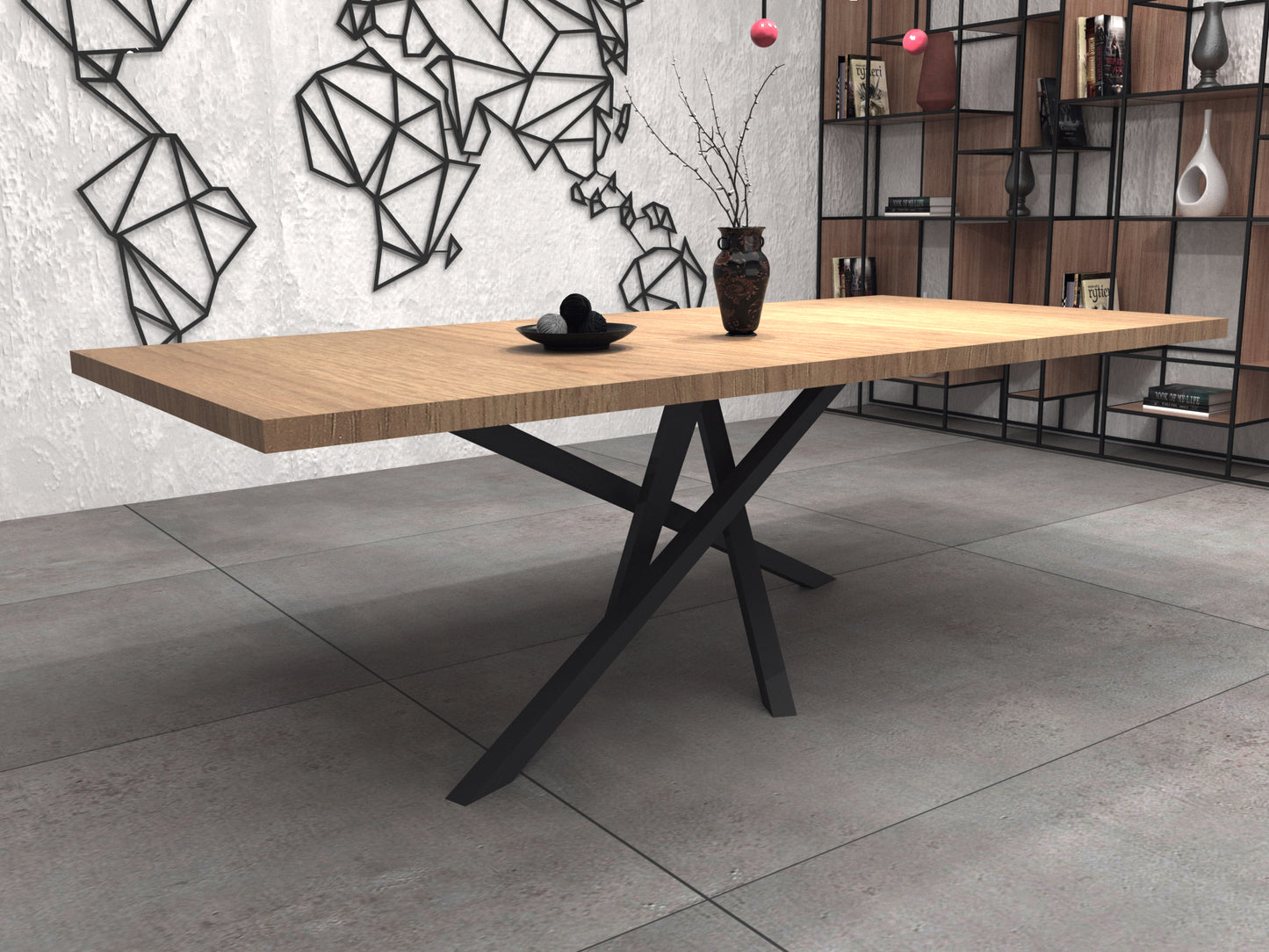 Wooden top in oak thickness 50 mm with: Standard finishes: oak dyed walnut.