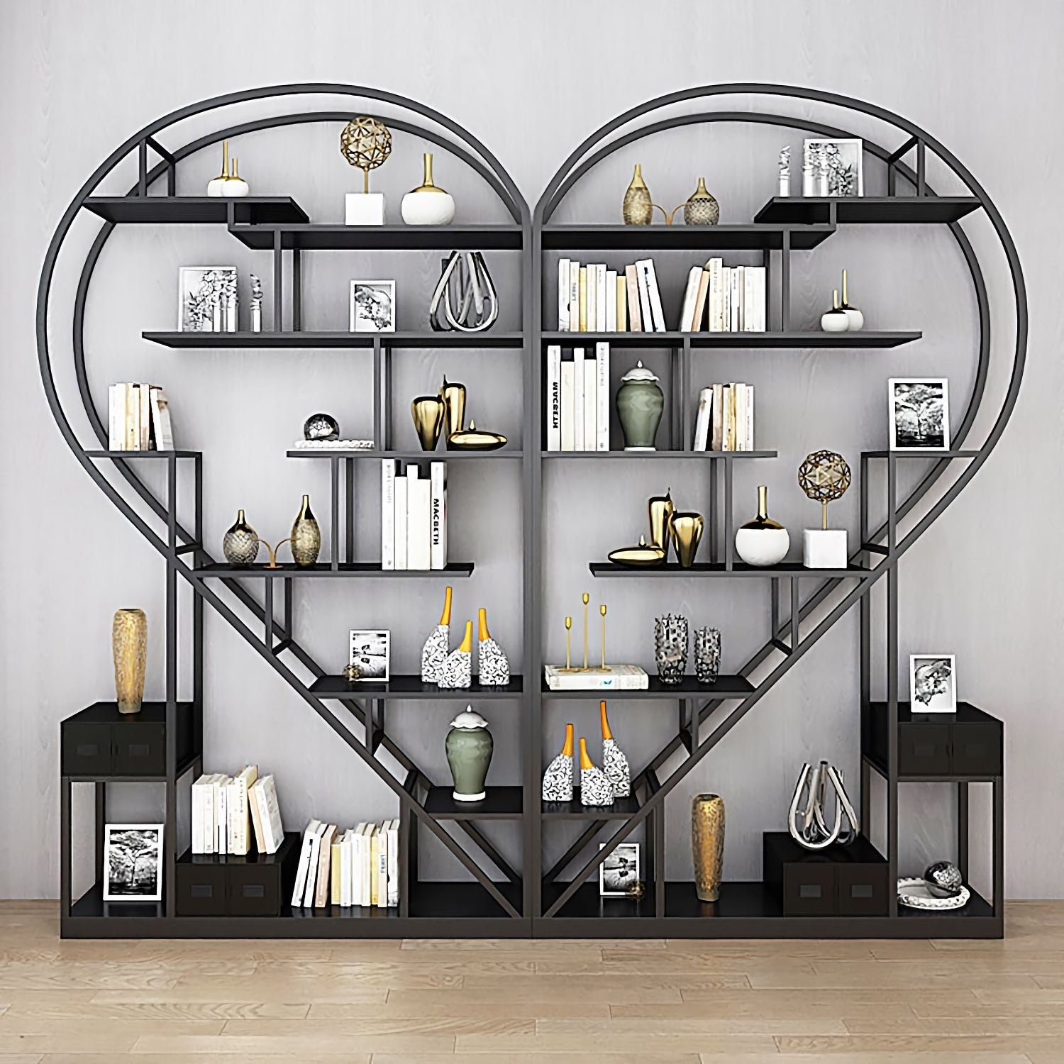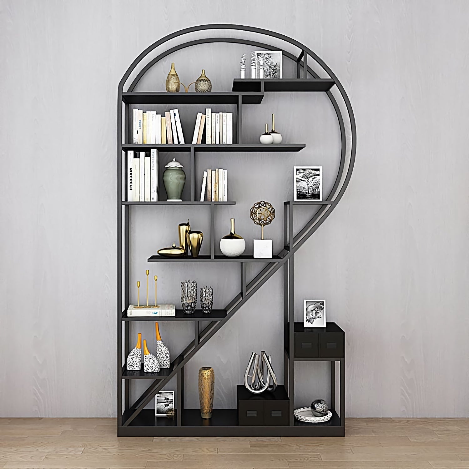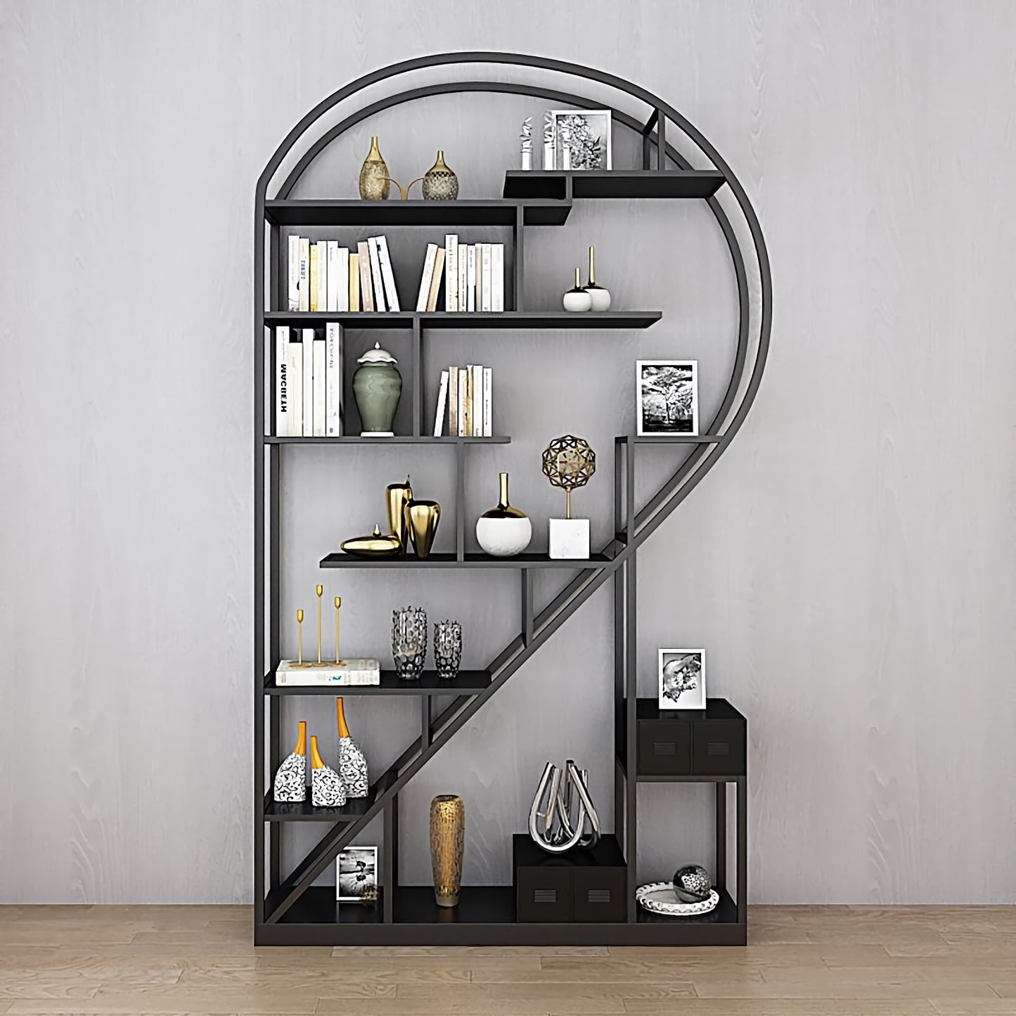 Add a touch of stylish style while creating versatile storage and display space with this Unique Black Metal Shelf. This shelf is perfect for your living room, office and more. These spacious shelves are ideal for storing a variety of different items like books, work binders, and organizing bins. Open shelf features simplicity and easy blend in with any home decor. This is not only a shelf but also could use as a screen. Constructed by corrosion-resistant metal, it is durable and stable. It can be placed in your corner space that will save space and is perfect for your tasteful home.